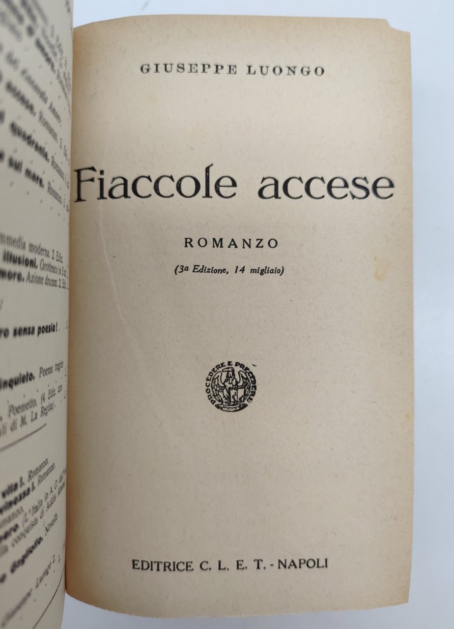 G. Luongo La trilogia del rinnovato amore Fiaccole accese L'ora sul quadrante Eola Alba sul mare C.L.E.T. anni '30
