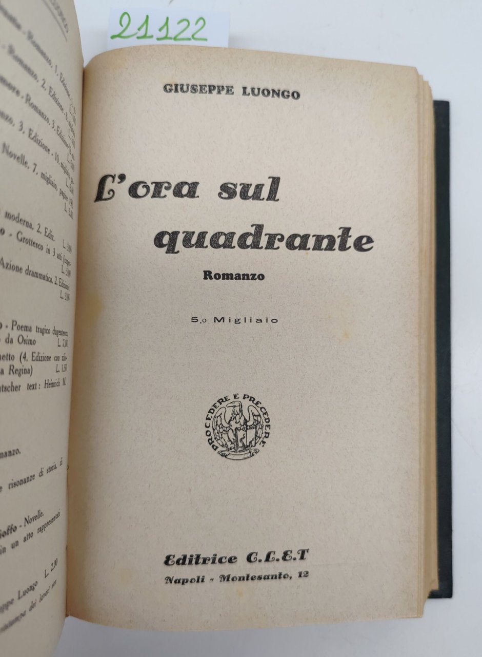 L'ora sul quadrante 5° 1934: in discreto stato alcune fioriture alle pagine interne che non impediscono la lettura, pagine leggermente brunite numero pagine 160