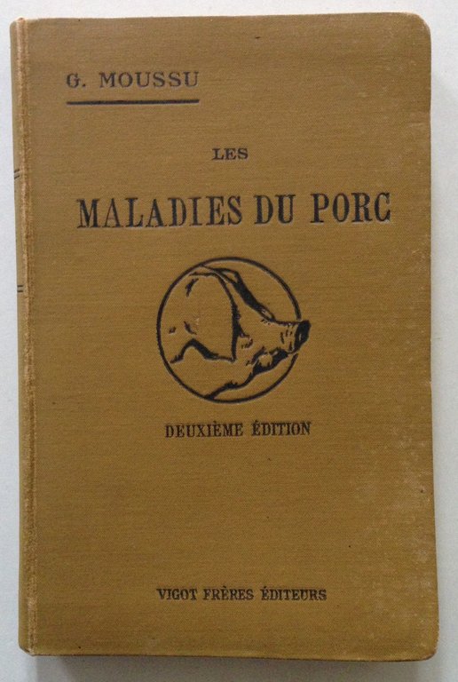 G. Moussu, Les maladies du porc Vigot Freres Editeurs, Paris, 1924; cm. 19.5x12.5, pp. 283; con 96 figg. in b/n n.t. (4 a col.), 12 tavv. a col. f.t.; cart. ed. rilegato, 12 ediz., testo in lingua francese. Condizioni di conservazione Esemplare in buono stato con leggere tracce d'uso e del tempo; piatti e dorso con minime abrasioni. SETT147.L14572 MT