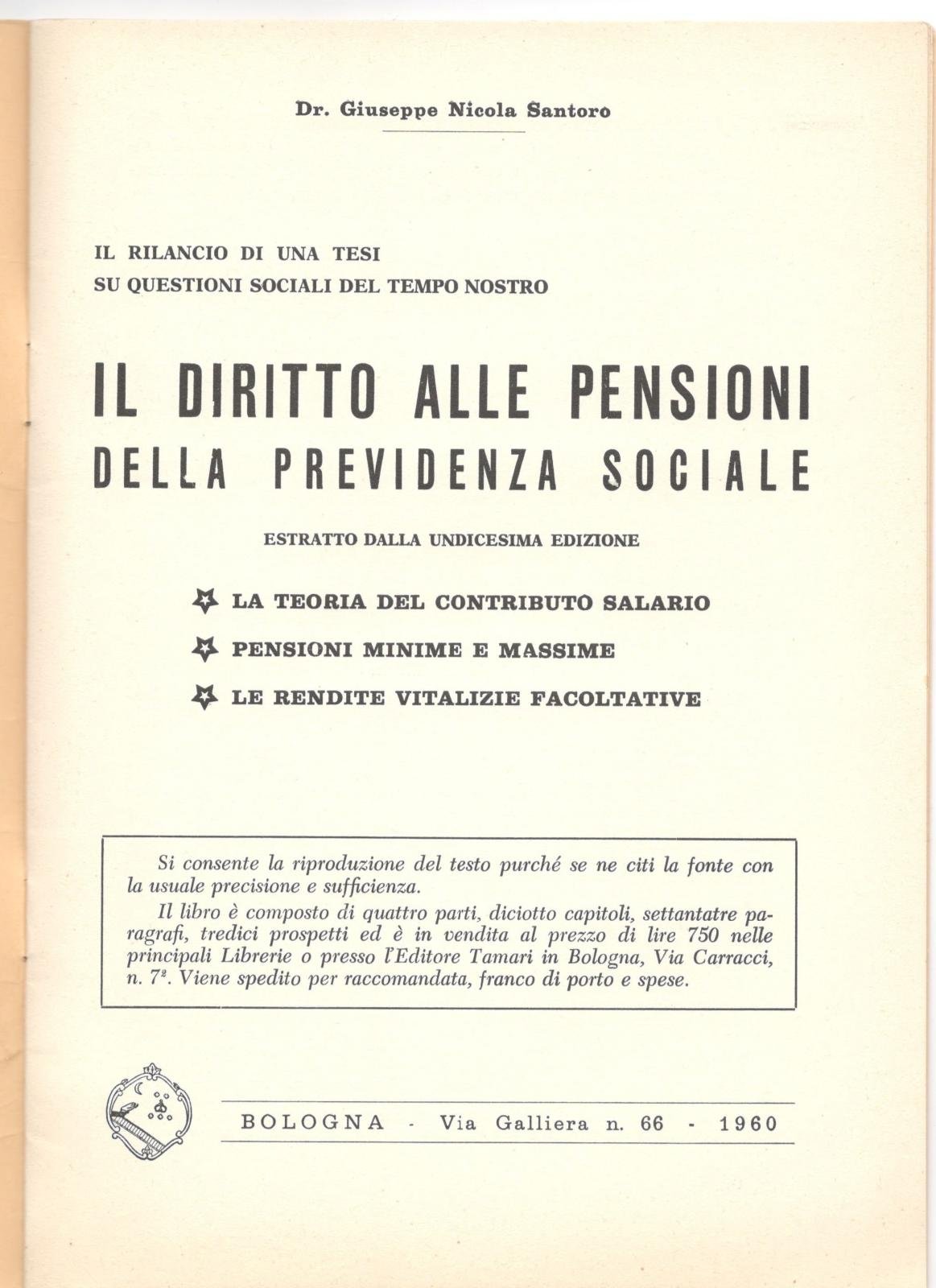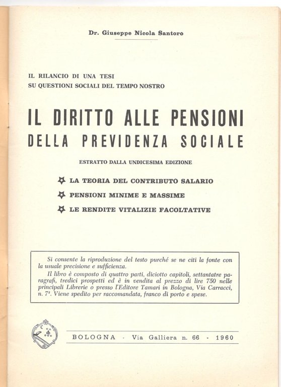 G. N. Santoro Il diritto alle pensioni della Previdenza Sociale estratto 1960
