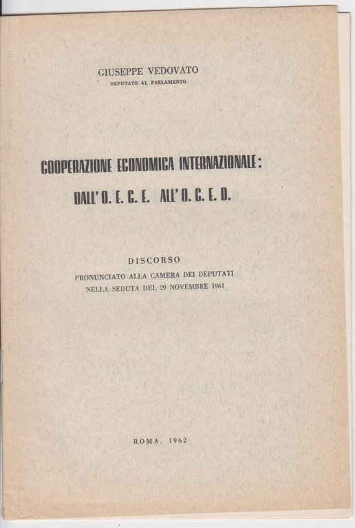G. Vedovato Cooperazione economica internazionale: Dall'O.E.G.E. all'O.G.E.D. Roma 1962