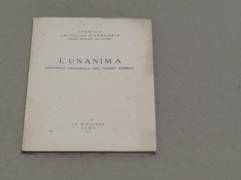 Gabriele Cruyllas D'Annunzio. L'unanima annunzio universale del teismo storico