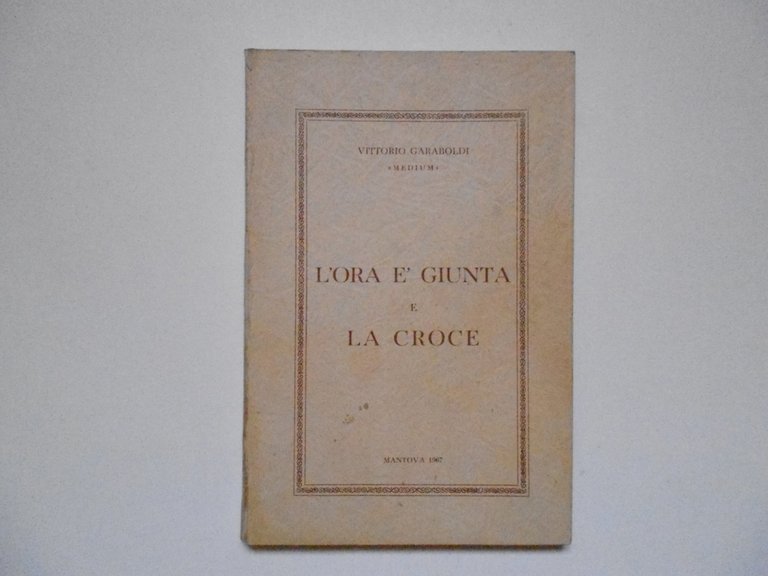 V. Garaboldi (medium"), -L'Ora E' Giunta -La Croce L'editore non è indicato (stampato presso La Rapida), Mantova, 1967. Cm. 21x14; pp. 78. Cartoncino edit. simil pelle marrone. Condizioni di conservazione Esemplare in buono stato di conservazione. Leggeri segnetti e qualche segno a matita alla coperta. Lievissime bruniture di polvere alla coperta. Un taglietto al margine sup. del fronte della coperta. SETT81.L20857G "