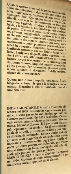 Questa non è una biografia romanzata. È una biografia e basta. Se qua e là somiglia a un romanzo, il merito è solo di Garibaldi, non dei suoi ritrattisti.