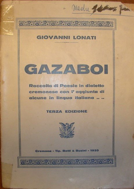 GAZABOI. Raccolta di poesie in dialetto cremonese con l'aggiunta di alcune in lingua italiana.
