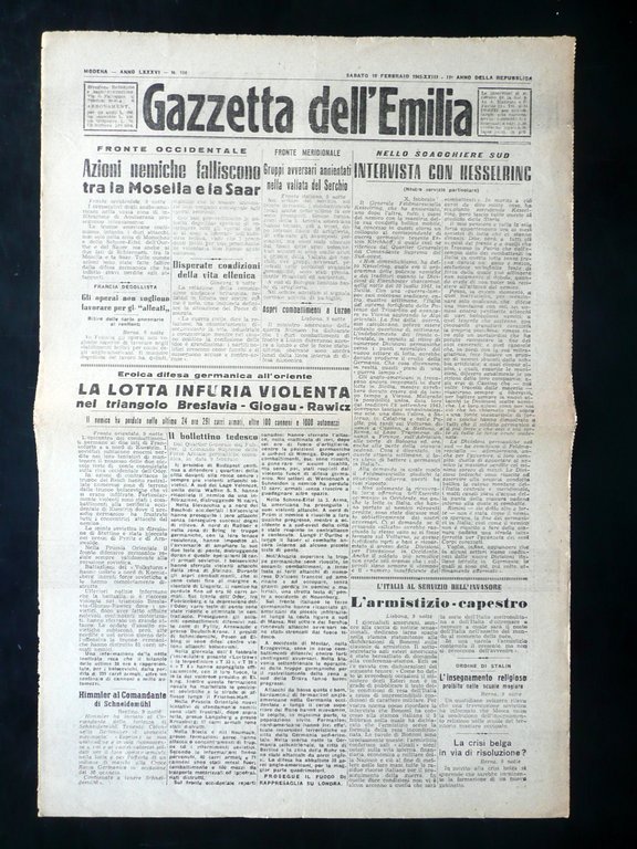 Gazzetta dell'Emilia Anno LXXXVI N. 104 10/2/1945 WW2 2∞ Guerra Mondiale RSI