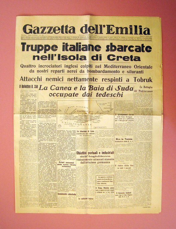 Gazzetta dell'Emilia n.191 29/5/1941 Truppe Italiane sbarcate a Creta