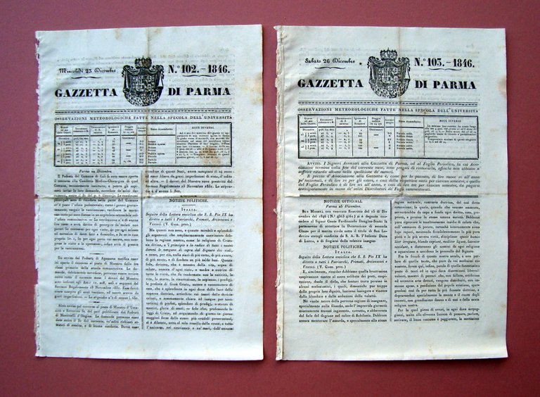 Gazzetta di Parma dicembre 1846 due numeri 102 103