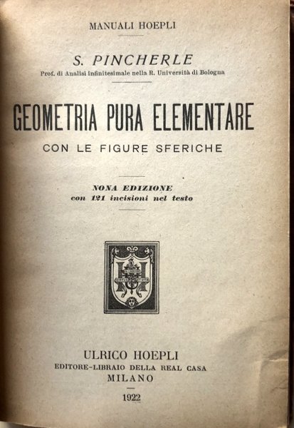 - Manuali Hoepli, Geometria Piana, Geometria Solida, Figure Sferiche, Matematica, Scienze, Libri Vintage, Antichi Manuali, Libri rari, Manualetti, Collezionismo