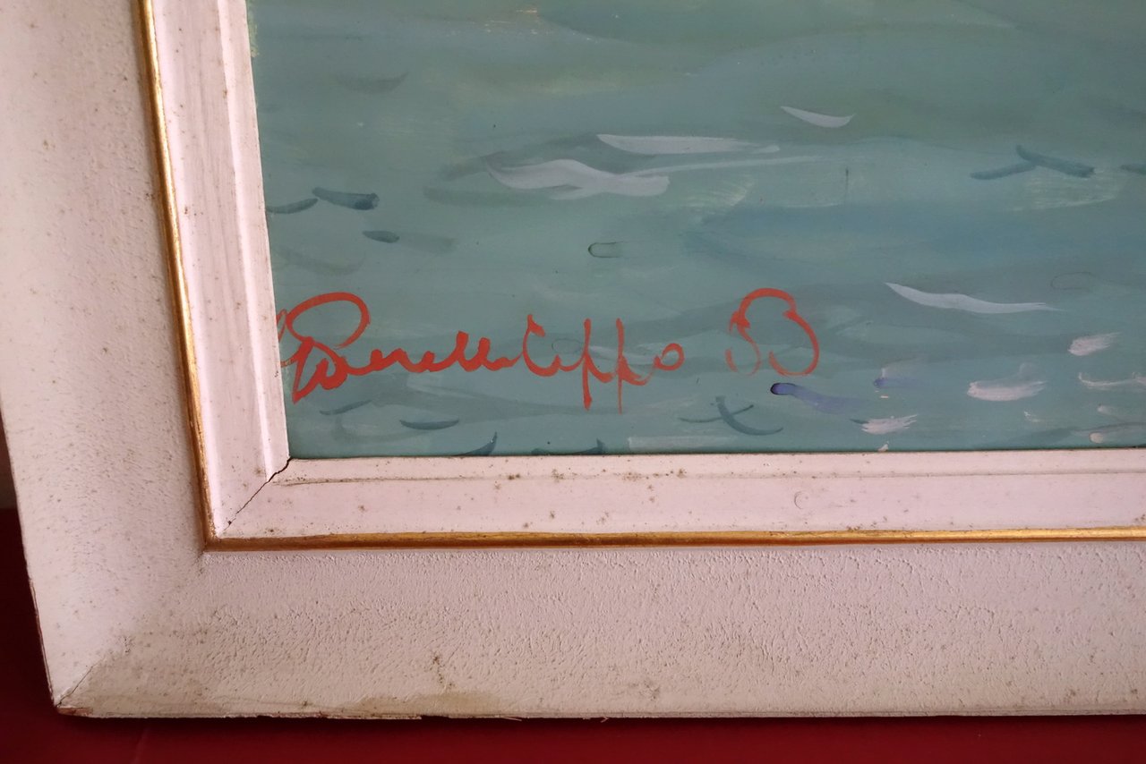 Quadro (tempera), Giancarlo Perelli Cippo (Milano 1923 - Ivi 2004) veduta veneziana tempera su cartone S. d.; quadro (tempera su cartone) incorniciato entro cornice lignea; firma dell'artista al margine inferiore sinistro. Grande formato. Dimensioni: cm 40x65 (quadro); cm 51,5x76 (cornice). Condizioni di conservazione Quadro molto ben conservato, senza alcuna rottura o difetto particolare; solamente alcuni pressoché trascurabili segni del tempo. Cornice anch'essa ben conservata con alcune minime macchioline. Giancarlo Perelli Cippo è nato a Milano nel 1923. E' stato avviato alla pittura da Gino Moro e Arturo Checchi, suoi insegnanti al Liceo Artistico di Brera. Su una base classica, mediante una personale ricerca, ha portato la sua pittura ad una intensa espressività riuscendo a cogliere con felice sintesi cromatica una singolare visione figurale. Ancor giovane ha ricevuto i primi inviti alle Biennali d'Arte Sacra dell'Angelicum e alle Quadriennali di Roma. Ha ottenuto premi e riconoscimenti in numerosi concorsi di pittura a Brescia, Bergamo, Torino, nel 1953 il Premio Paesaggio della Lomellina", nel 1977 il "Premio Burano". I luoghi frequentati e amati dall'artista sono divenuti parte del suo corredo creativo: Milano, con la darsena, i navigli, San Siro e i cavalli in corsa; Venezia con la sua laguna e le isole poetiche di Burano e Torcello; il paesaggio toscano, i paesi rivieraschi del lago di Como e del Garda, le sponde dei fiumi della pianura lombarda; le magistrali vedute di Amsterdam con i suoi canali. Date le dimensioni e la tipologia, è disponibile il solo ritiro diretto. Per maggiori informazioni contattateci. SC05.L0122 N "