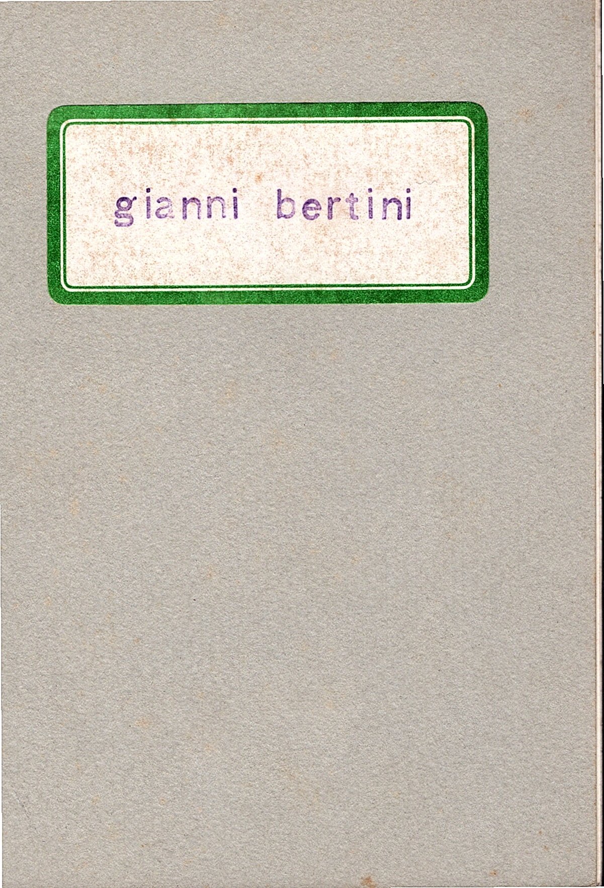 In-16° (15x11 cm), pp. (20), brossura editoriale grigia spillata con titolo su tassello cartaceo applicato al piatto anteriore. 6 tavole b/n fuori testo. Ottimo esemplare. Catalogo della mostra personale alla Galleria Pourquoi pas? di Genova (24 marzo -14 aprile 1973). Testo critico di Rodolfo Vitone. Bertini (1922-2010 ) fu uno dei più significativi esponenti dell' Arte Nucleare e della Mec Art (abbreviazione di 'mechanical-art') che declino in poesia visva, installazioni e grafiche.