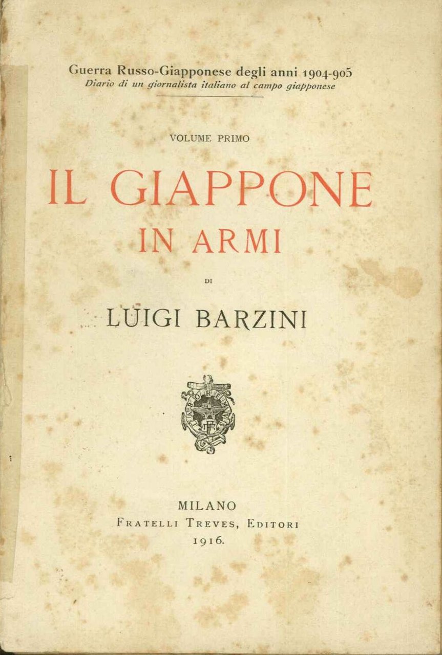 brossura editoriale con titolo in rosso e nero. buona copia in barbe. Reimpressione (la prima edizione è del 1906) di questa raccolta di corrispondenze barziniane dal Giappone all'epoca della Guerra Russo - Giapponese