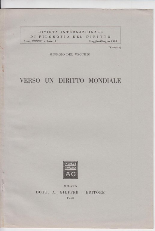 Giorgio Del Vecchio Verso un diritto mondiale GiuffrË 1960