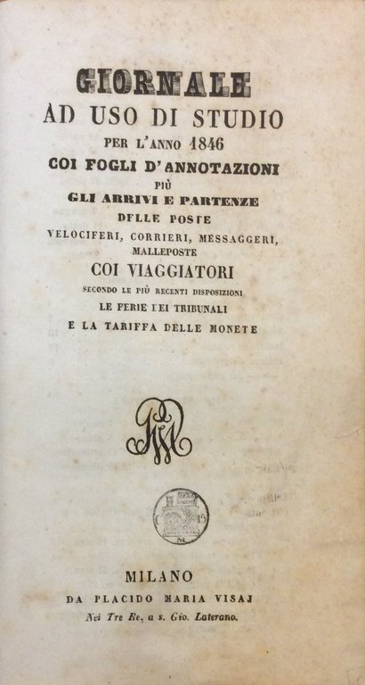 GIORNALE AD USO DI STUDIO PER L'ANNO 1846.