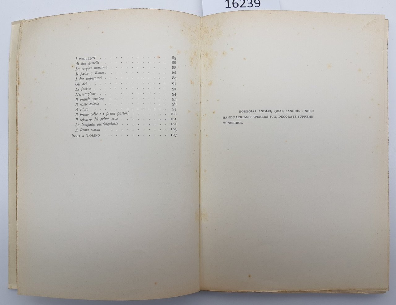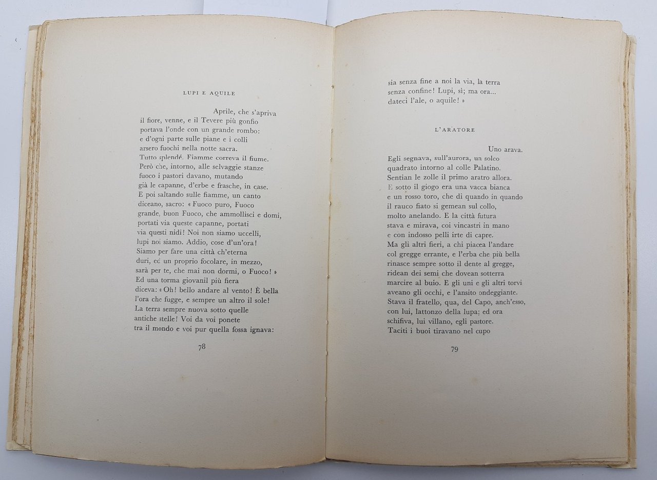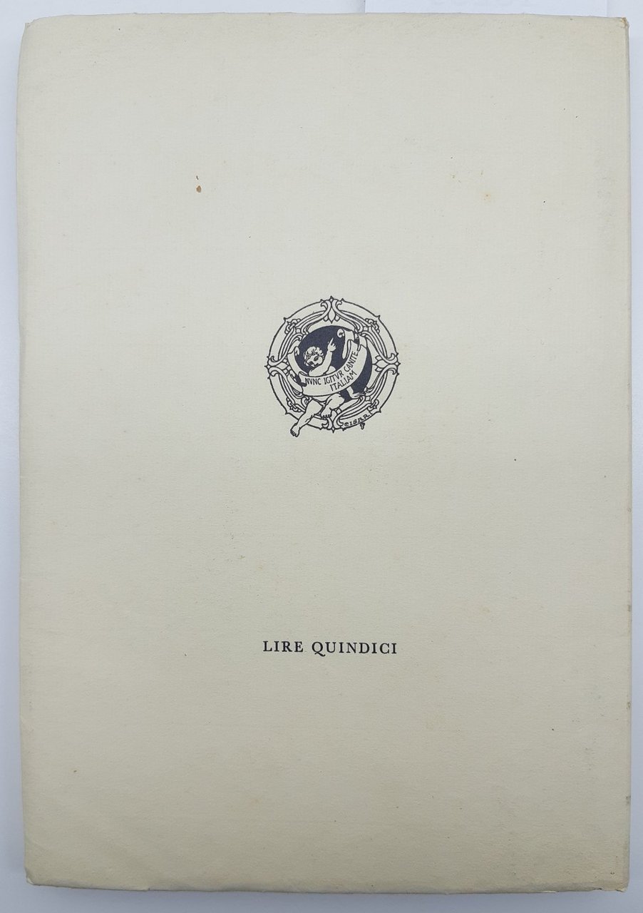 Sovraccoperta editoriale con alcuni aloni ai piatti e al dorso, piccole pieghe ai margini dei piatti, tagli irregolari bruniti con alcune fioriture, copertina morbida muta, fioriture diffuse alle prime ed ultime pagine, rare fioriture alle pagine interne, in buono stato, numero pagine 134 dimensioni cm 23,5 * 16,5 , una piega all'angolo superiore esterno alla quarta di copertina che va ad interessare anche le ultime pagine