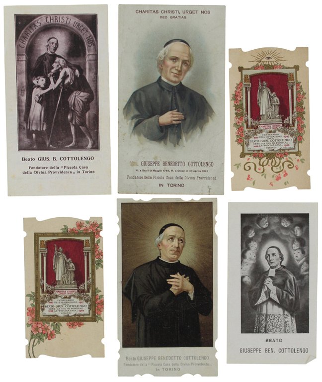 GIUSEPPE BENEDETTO COTTOLENGO 6 immaginette santini d'epoca (3 in cromolito)