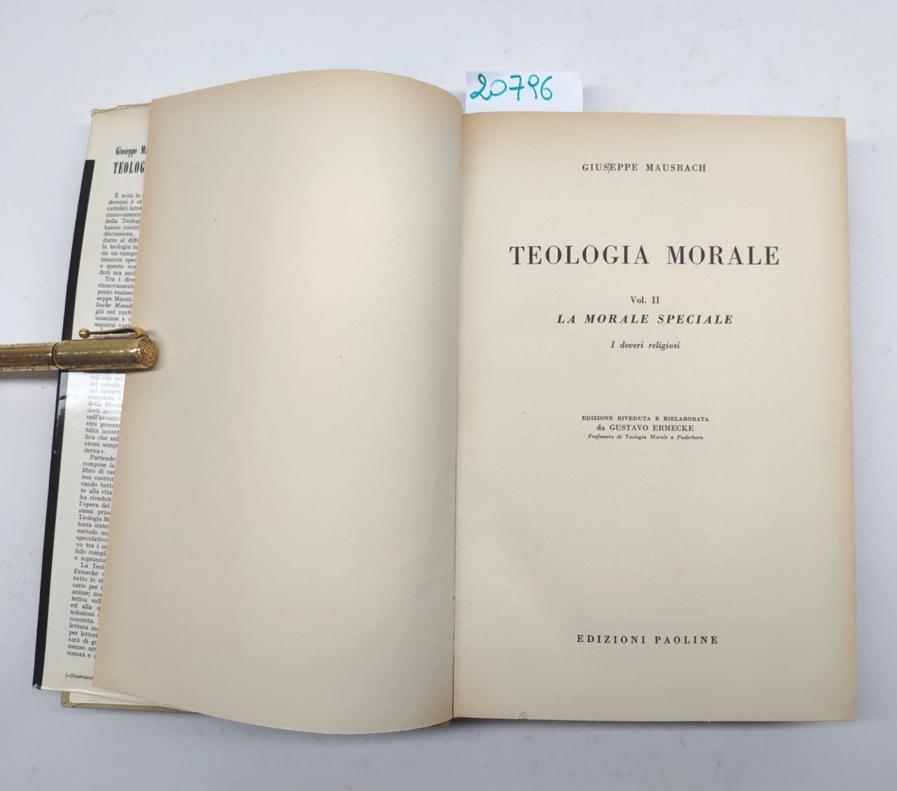 Giuseppe Mausbach Teologia morale volume II la morale speciale i doveri religiosi Edizioni Paoline 1957