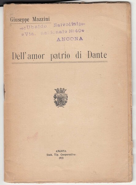 Giuseppe Mazzini Dell'amor patrio di Dante Ancona 1921