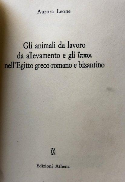 GLI ANIMALI DA LAVORO, DA ALLEVAMENTO E GLI IPPOI NELL'EGITTO GRECO-ROMANO E BIZANTINO | Libros antiguos y modernos | Aurora Leone
