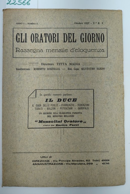 Gli oratori del giorno anno I numero 6 ottobre 1927