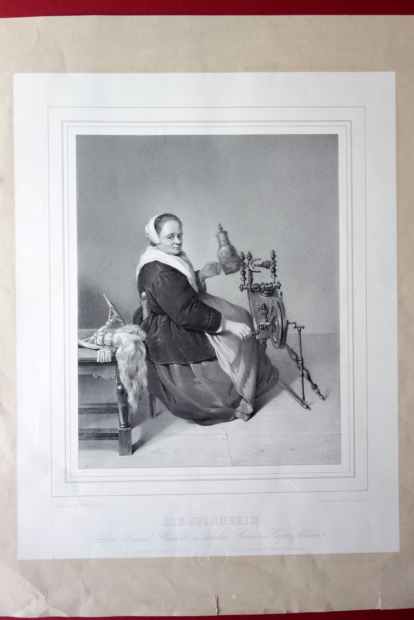 Grande Litografia Die Spinnerin Filatrice F. Hanfstaengel Dresda Met‡ Ottocento