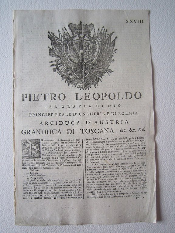 Grida Leopoldo Granducato Toscana 1775 Vellano Sorana Pietra Buona Gonfaloni
