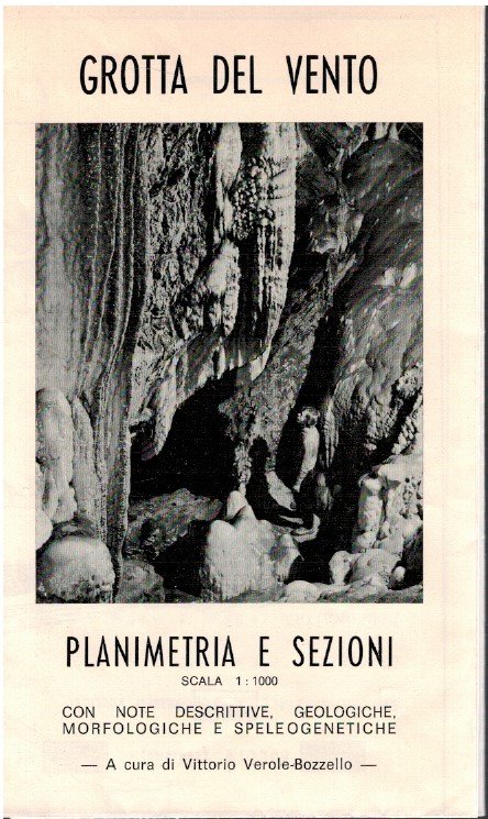 Brossura ripiegata a fisarmonica composta da 10 facce e internamente la cart planimetrica e longitudinale della grotta. Opera ben conservata all'interno di bustina di plastica