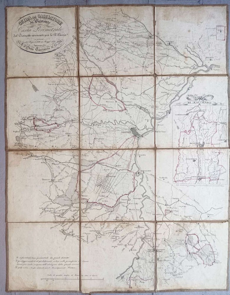 Guida del cacciatore in Piemonte ossia Carta Perimetrale dei Distretti riservati per le R.e Caccie a norma del Regio Editto 10 Maggio 1831. Approvata da S.E. il Gran Cacciatore di S.M.