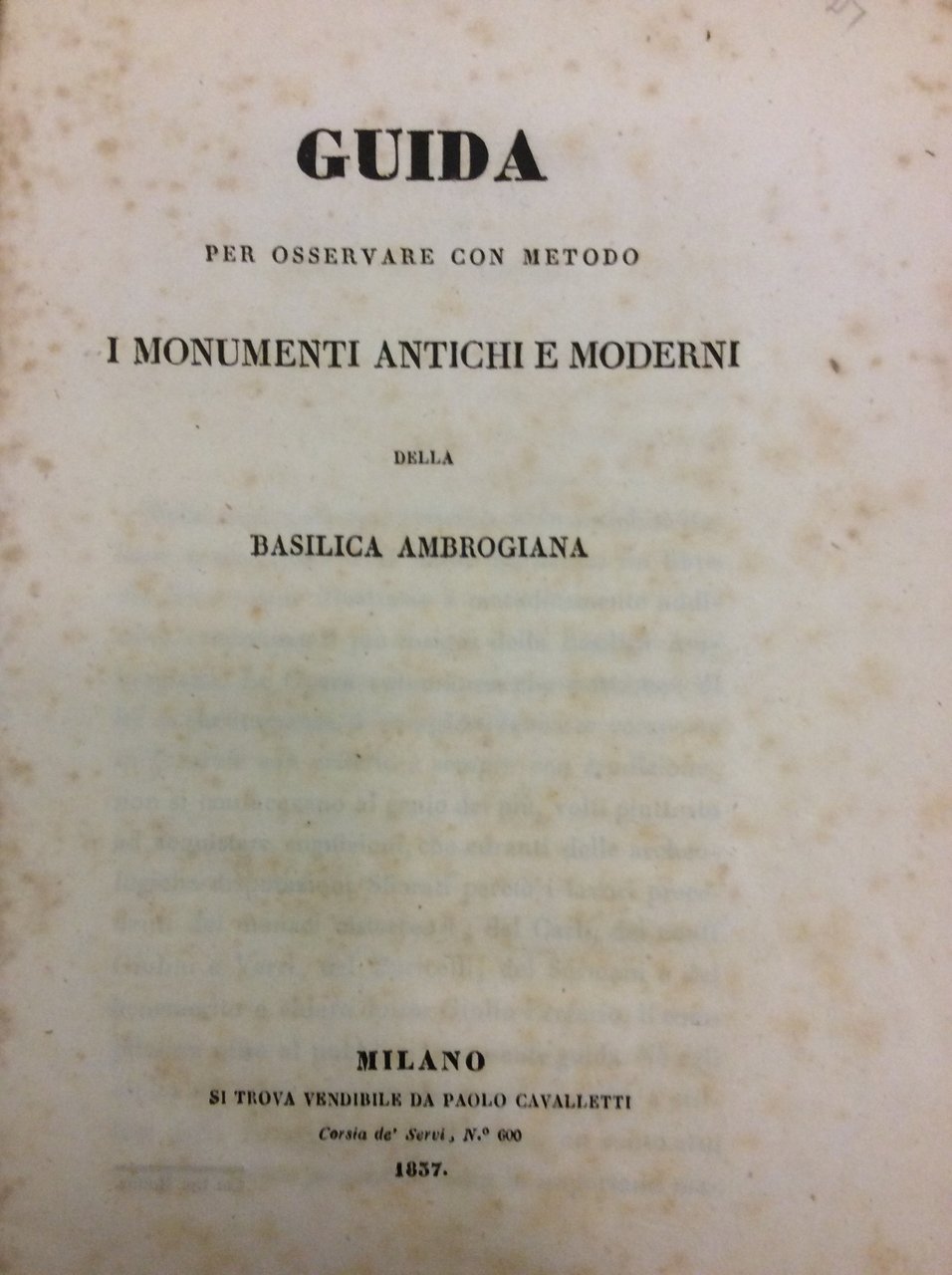 GUIDA PER OSSERVARE CON METODO I MONUMENTI ANTICHI E MODERNI DELLA BASILICA AMBROGIANA.