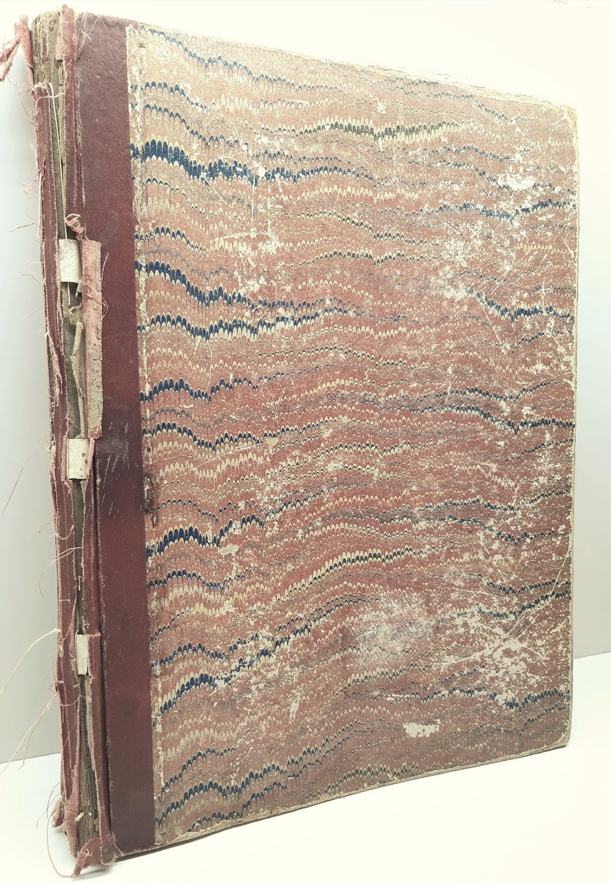 Legatura in precarie condizioni, rigida con piatti marmorizzati album slegato con rotture e mancanze al dorso, alcuni fogli sciolti, dimensioni cm 35,7 x 29