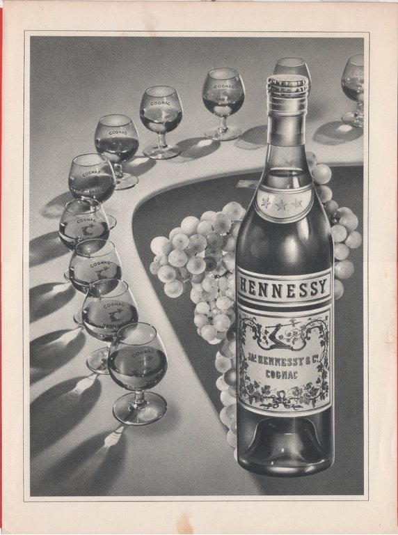 Hennessy cognac/Biokosma. Advertising 1958, fronte/retro