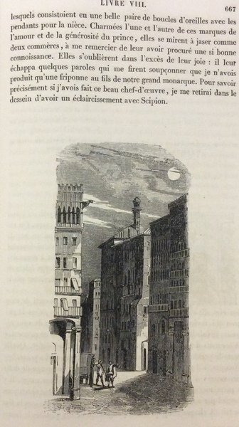 In-8 gr. (mm. 246x160), mz. pergamena moderna, pp. 972, con un ritratto di Gil Blas fuori testo (restaurato) e numerosissimi disegni di Gigoux, inc. su legno nel testo. Pagine leggermente ingiallite per la qualità della carta, altrimenti ben conservato.