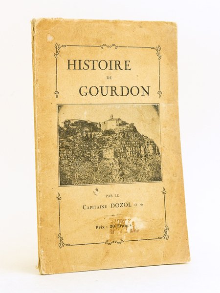 1 vol. in-8 br., H. Ventre Fils, Nice, s.d. [1926 ], 109 pp. Etat satisfaisant (couv. frottée). Peu commun. Gourdon est un village des Alpes Maritimes, perché sur un sommet, à 760 mètres d'altitude.