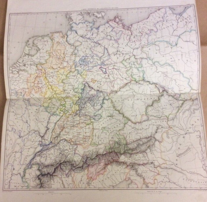 In-8 p. (mm. 220x134), 20 volumi, mezza pelle coeva, fregi e titolo oro al dorso, molto ben illustrati da 75 tavole fuori testo (inc. su acciaio) + un volume di Atlante, in folio (mm. 430x273), dressé et dessiné sous la direction de M. Thiers par MM. A. Dufour et Duvotenay, gravé sur acier par Dyonnet, 1859. L'Atlante, rilegato in mz. pelle coeva (con abras.), fregi e titolo oro al dorso, contiene pp. (4) e 66 carte geografiche e piante (7 a doppia pag. di cui 2 a colori) inc. su acciaio. "Prima edizione", completa.Questa "grande composition historique à laquelle on n'a pu reprocher qu'un peu de prolixité dans les détails militaires", come cita il Brunet,V,822, copre il periodo storico dal novembre 1799 al maggio 1821. Cfr. anche Graesse,VII,135 - Lorenz,IV,496. Esemplare di studio (con pesanti aloni di umidità).