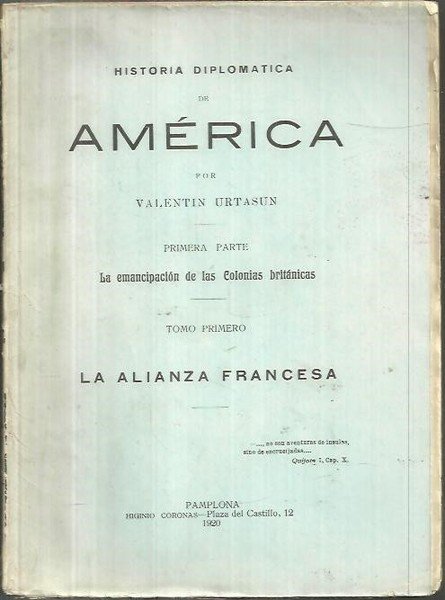 HISTORIA DIPLOMATICA DE AMERICA. PRIMERA PARTE. LA EMANCIPACION DE LAS COLONIAS BRITANICAS. TOMO PRIMERO. LA ALIANZA FRANCESA.