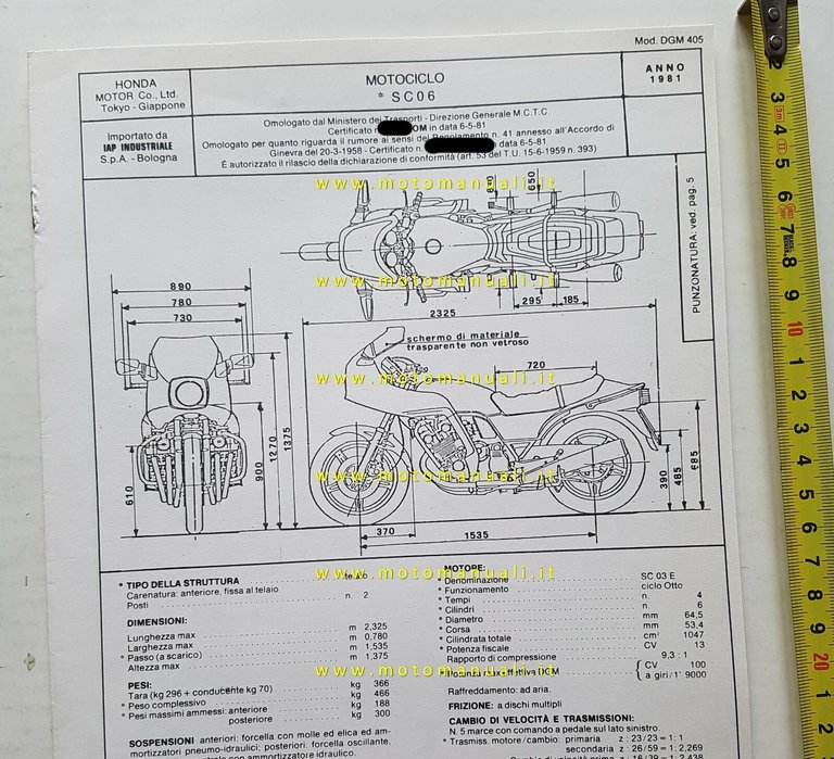 Honda CBX 1000 Pro-Link 1981 facsimile scheda omologazione DGM Motorizzazione