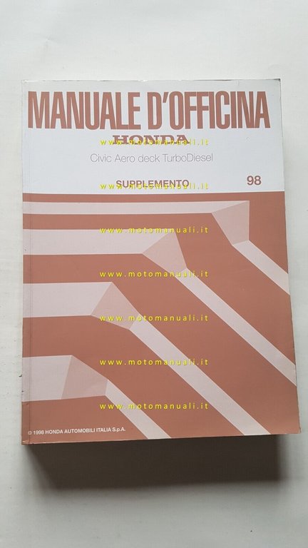 HONDA CIVIC Aero Deck Turbo D. 1998 SUPPLEMENTO manuale officina ITALIANO