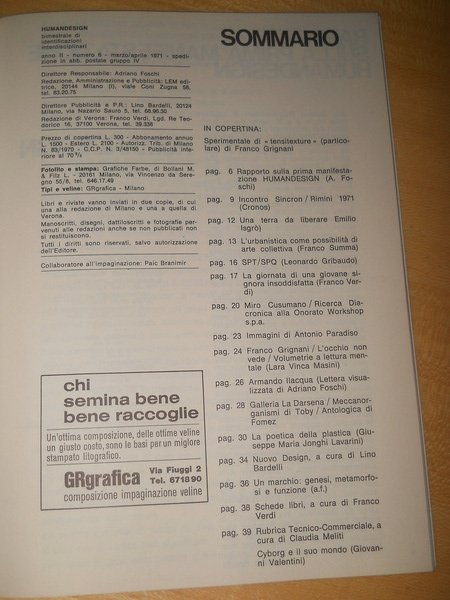 LEM Editrice, marzo/aprile 1971 - copertina morbida, pag. 40, formato cm. 17 x 24 - ottimo stato, copertina con normali segni usura e tempo