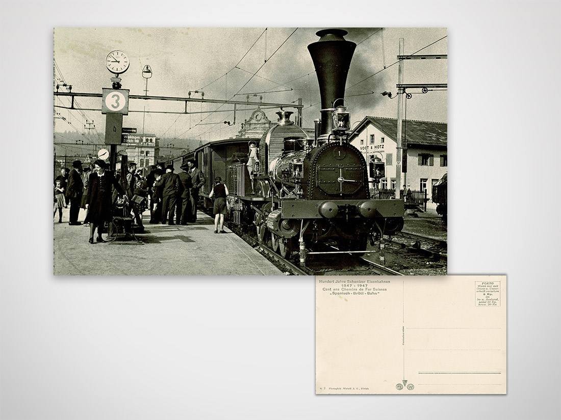Cartolina Hundert Jahre Schweizer Eisenbahnen, non viaggiata  Dimensioni: 10,5 x 14,8 cm