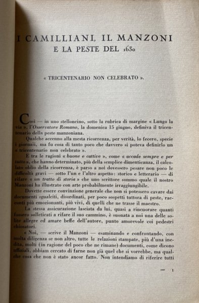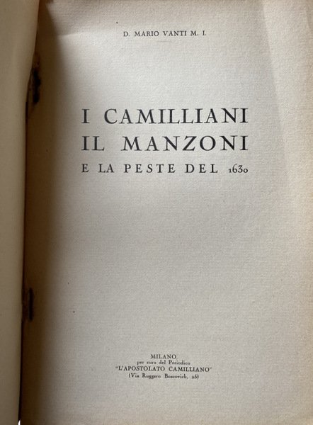 I CAMILLIANI, IL MANZONI E LA PESTE DEL 1630 | Libros antiguos y modernos | D. Mario Vanti