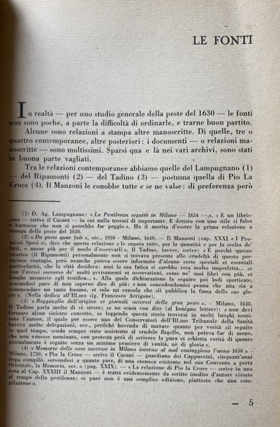 «TRICENTENARIO NON CELEBRATO». Così in uno stelloncino, sotto la rubrica di margine «Lungo la via», l'Osservatore Romano, la domenica 15 giugno, definiva il tricentenario della peste manzoniana. Qualche accenno alla mesta ricorrenza, per verità, lo fecero, specie i giornali, ma fu cosa di tanto poco che davvero si poteva definirlo un «tricentenario non celebrato». E tra le ragioni «buone e cattive», come «accade sempre e per tutto», che hanno determinato, più della semplice dimenticanza, il calcolato oblio della ricorrenza, è parso a noi dovessero pesare non poco le difficoltà gravi sotto l'un e l'altro aspetto: storico e letterario di rifare un tratto di storia che uno scrittore sommo quale il nostro Manzoni ha illustrato con arte probabilmente irraggiungibile. Dovette essere convinzione generale che non si potessero cavare dai documenti sgualciti, disordinati, per poco sospetti tuttora di peste, racconti più emozionanti, più vivi, di quelli che ne trasse il maestro. La stessa assicurazione lasciata da lui, quasi a rincuorare quanti fossero solleticati a rifare il suo cammino, è suonata a noi una delle solite allegre ed amare beffe dell'autore, punto amorevole coi pedestri chiosatori.