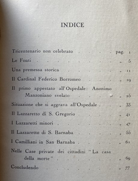 Soggetti: Bibliografia camilliana, Milano, Storia, S. Camillo de Lellis, Letteratura italiana, Alessandro Manzoni, 1785-1873, Critica letteraria, Studi culturali, Studi letterari, Analisi, Promessi Sposi, Ministri degli infermi, Sec. XVII, Peste, 1630, Documenti, Atti pubblici, Relazioni, Fonti storiche, Bibliografia, Riferimento, Consultazione, Collezionismo, Anni Trenta, Libri Vintage Fuori catalogo, Peste, Epidemie, Malattie virali, Untori, Morte, Agnese, Lampugnano, Tadino, Ripamonti, Pio La Croce, Pestilenza, Tribunale, Sanità, Contagio, Ospedali, Cronache, Memorie, Ricorrenze storiche, Venezia, Firenze, Bologna, Mantova, Piacenza, Borgonovo Valtidone, Cure, Infermeria, Religiosi, Archivio Storico, San Gregorio, Carità, Carri, Cavalli, Trasporto, Malati, Chiesa, Ministri degli Infermi, Registri, Appestati, Giulio Cesare Terzago, Nobili, Nobiltà, Casati, Arcivescovo, Visconti, Febbre, Infermi, Sant'Ambrogio ad nemus, Olimpio Nofri, Assistenza, Padri, Da collezione, Camillian Bibliography, Milan, History, Italian Literature, Literary Criticism, Cultural Studies, Literary Studies, Analysis, Betrothed, Ministers of the Sick, 17th Century, Plague, Documents, Public Acts, Reports, Historical Sources, Bibliography, Reference, Consultation, Collectibles, Thirties, Out of print books, Plague, Epidemics, Viral diseases, Plagues, Death, Pestilence, Court, Health, Contagion, Hospitals, Chronicles, Memories, Historical recurrences, Venice, Florence, Mantua, Treatments, Infirmary, Religious, Historical archive, Charity, Chariots, Horses, Transport, Sick, Church, Ministers of the Sick, Registers, Plagued, Nobles, Nobility, Houses, Archbishop, Fever, Sick, Assistance, Fathers, Collectible