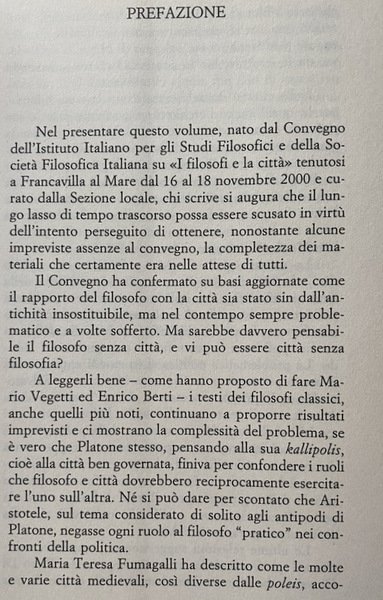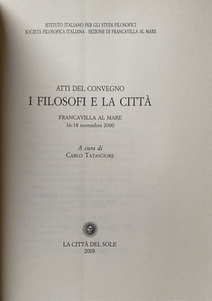 I FILOSOFI E LA CITTÀ. (ATTI DEL CONVEGNO: FRANCAVILLA AL MARE, 16-18 NOVEMBRE 2000). A CURA DI CARLO TATASCIORE.