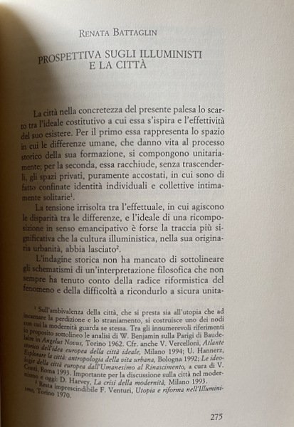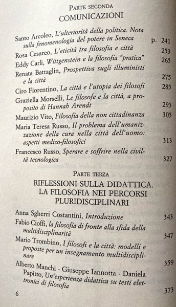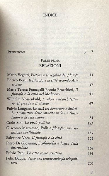 Soggetti: Filosofia, Seminari, Convegni, Atti, Studi culturali, Città, Spazio, Abitare, Politica, Comunità, Fenomenologia, Didattica, Poleis greche, Metropoli, Benessere, Ambiente, Filosofi, Studi culturali, Ideologie, Illuminismo, Tecnica, Tecnologia, Umanesimo, Distruzione, Diritti politici e sociali, Relazioni, Etica, Utopia, Cittadini, Cittadinanza, Architettura, Struttura urbana, Medioevo, Rinascimento, Comuni, Piazza, Centro, Luoghi, Libri Vintage Fuori catalogo, Bibliografia, Saggistica, Panels, Atti, Documenti, Felicità, Critica, Esistenza, Simone Weil, Essere e Tempo, Habermas, Poiesis, Praxis, Totalitarismo, Agire collettivo, Storia, Socrate, Repubblica, Platone, Aristotele, Timeo, Atlantide, Atene, Machiavelli, Welfare, Utilitarismo, Teorie, Comportamento, Positivismo, Economia, Arte, Civitates, Stato, Bene comune, Wittgenstein, Civiltà, Civilizzazione, Periferie, Vita urbana, Locale, Globale, Globalizzazione, Progettazione, Mondo, Identità collettiva, Valori, Inclusione, Democrazia, Memoria, Nazionalismo, Appartenenza, Vita Activa, Condizione umana, Diritto, Philosophy, Seminars, Conferences, Acts, Cultural studies, Cities, Space, Living, Politics, Community, Phenomenology, Didactics, Greek poles, Metropolis, Wellbeing, Environment, Philosophers, Cultural studies, Ideologies, Enlightenment, Technique, Technology, Humanism, Destruction, Political and social rights, Relations, Ethics, Citizens, Citizenship, Architecture, Urban structure, Middle Ages, Renaissance, Municipalities, Square, Center, Places, Out of print books, Bibliography, Non-fiction, Acts, Documents, Happiness, Criticism, Existence, Being and Time, Totalitarianism, Collective action, History, Socrates, Republic, Plato, Aristotle, Timaeus, Atlantis, Athens, Utilitarianism, Theories, Behavior, Positivism, Economy, Art, State, Common good, Civilization, Civilization, Suburbs, Urban life, Local, Globalization, Design, World, Collective identity, Values, Inclusion, Democracy, Memory, Nationalism, Belonging, Vita Activa, Human condition, Law