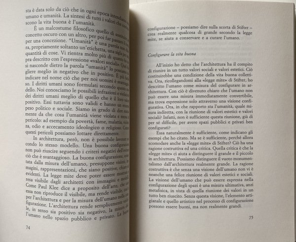 Nella città si dovrebbe realizzare la «vita buona», per la quale anche l'architettura potrebbe fare la sua parte se, come ha suggerito Vossenkuhl, concepisse la grandezza non nel senso della monumentalità, ma ispirandosi alla cura dell'umano, preoccupandosi cioè tanto della bellezza quanto dei valori sociali. All'ideale già aristotelico della «vita buona» si è richiamato anche Fulvio Longato, andando ad analizzare il dibattito in corso sui diritti umani, in cui sono impegnati in particolare Martha Nussbaum e Amartya Sen.