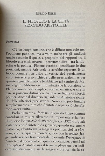 Enrico Berti, Il filosofo e la città secondo Aristotele