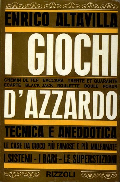 I giochi d'azzardo tecnica e aneddotica. Le case da gioco più famose e più malfamate.I sistemi-I bari-Le superstizioni.