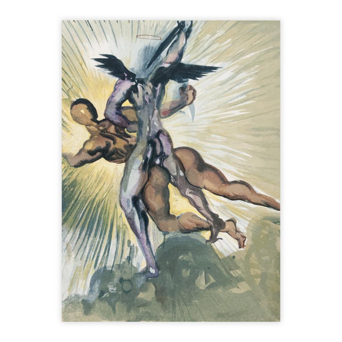 “e vidi uscir dall’alto e scender giuedue angeli con due spade affocate," (Canto VIII) Salvador Dalì La Divina Commedia - PurgatorioDimensioni folio cm 33 x 26Supporto: Xilografia Originale - 1960Provenienza: La Divine comédie, Edizioni D'Art Les Heures claire rue Bonaparte 19 Parigi 1959-1963La tavola in vendita è completa di passepartout pronta per essere incorniciata, è in perfette condizioni generali.Certificato di Autenticità (C.O.A.) allegato.