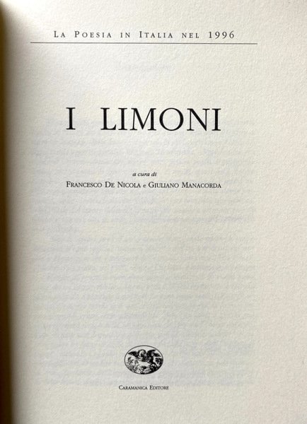 I LIMONI. LA POESIA IN ITALIA NEL 1996. A CURA DI FRANCESCO DE NICOLA, GIULIANO MANACORDA