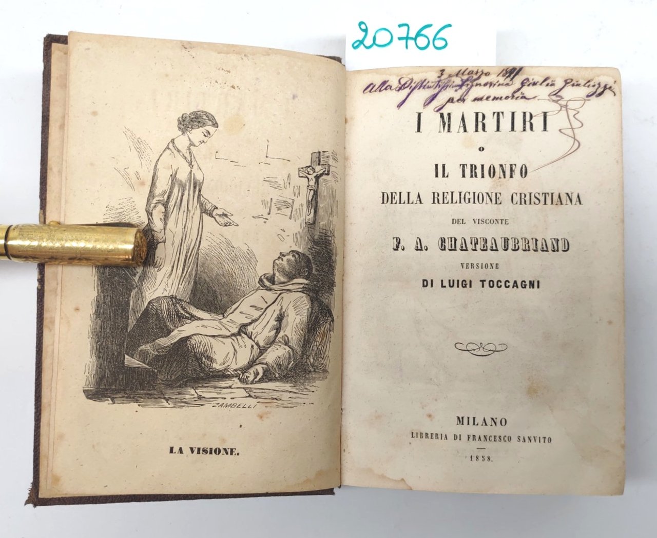 I martiri o il trionfo della religione cristiana del visconte F. A. Chateaubriand versione di Luigi Toccagni Milano libreria Francesco San vto 1858